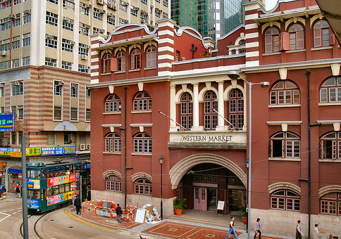 1906년에 붉은 벽돌로 지어진 웨스턴 마켓은 홍콩에 남아있는 서양식 건물중에서 가장 오래된 상가 건물입니다.