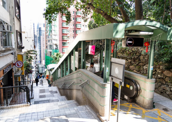센트럴 MRT의 남쪽 부근에 있으며 센트럴 데 부 로드부터 시작하여 미드레벨이라고 부르는 콘듀이트 로드까지 올라갈 수 있습니다.
